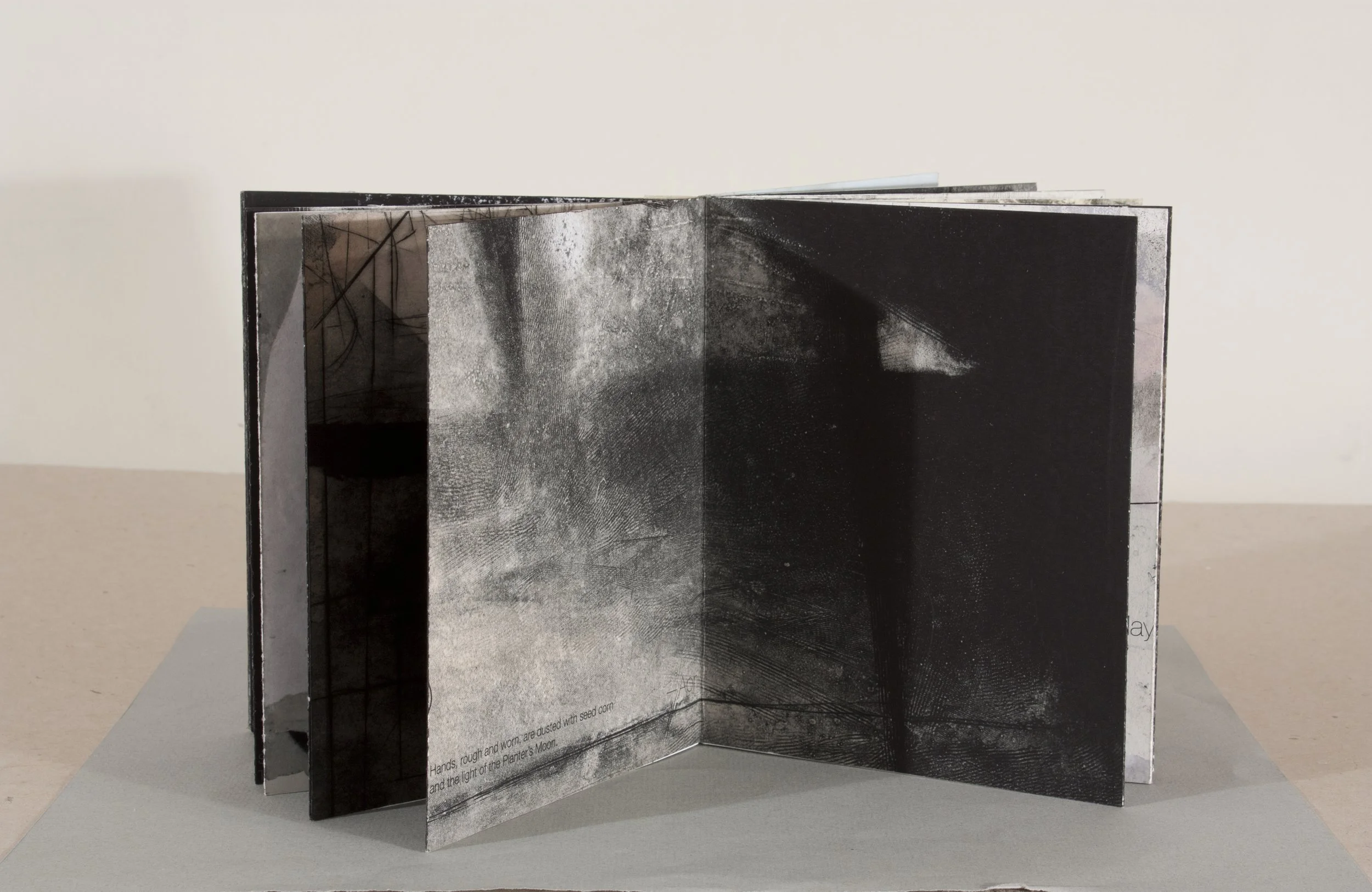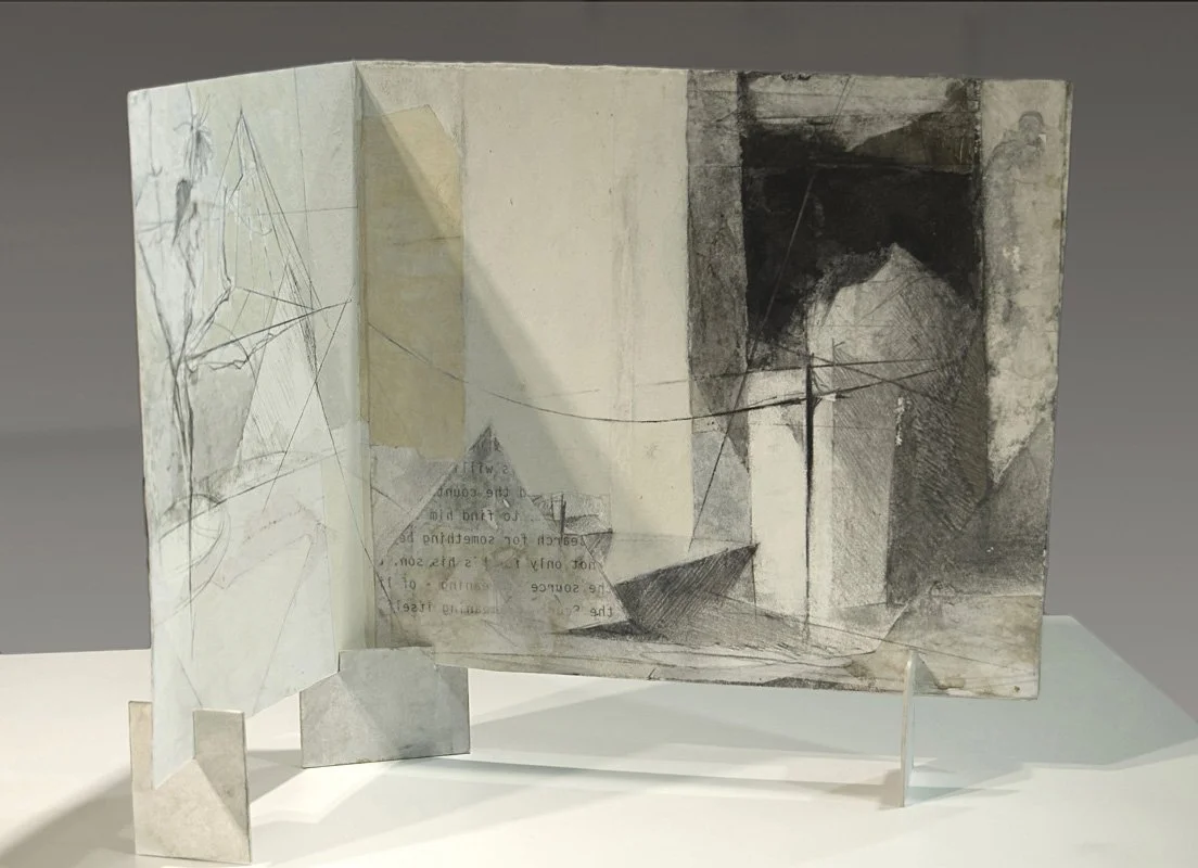 "'Rilke's' Space. between the notes" / digital drawing processes, hand collage of intaglio imagery, 12-page booklet - accordian fold spine, archival papers / 6"x5"x.25"thick / NFS